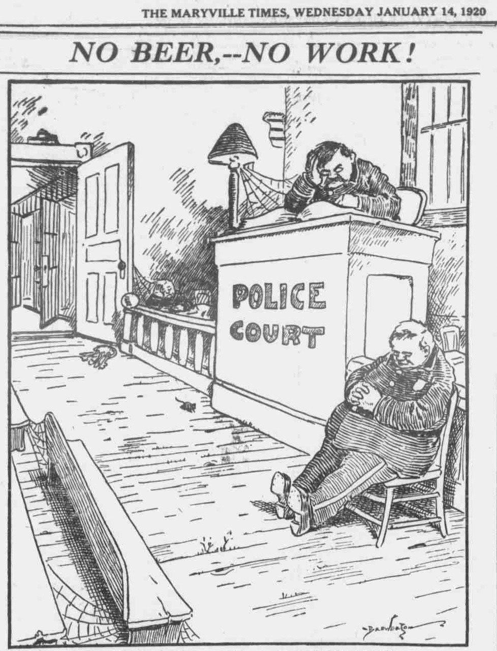 On January 15, 1919, the Knoxville Sentinel’s headline read “Nation To Be Voted Dry Within Twenty-Four Hours.” Dry was the shorthand term for a ban on alcohol, commonly referred to as Prohibition. For Prohibition to become law, three-quarters of the states first had to pass the 18th Amendment to the Constitution. That threshold was indeed reached the next day. The amendment provided that, one year from ratification, it would be illegal to manufacture, sell, or transport intoxicating liquors in the United States. It also gave Congress the power to pass laws to enforce the ban.