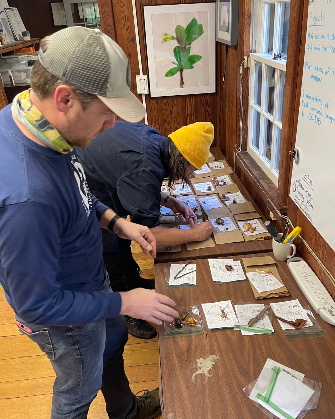 We barely covered half a mile of trail, yet within a couple of hours we had collected dozens of specimens. The group returned to the DLiA office in Gatlinburg, Tennessee, with a large array of fungi and data sheets. We took photos and organized the specimens, designating which ones would require DNA sequencing to accurately identify them to species.