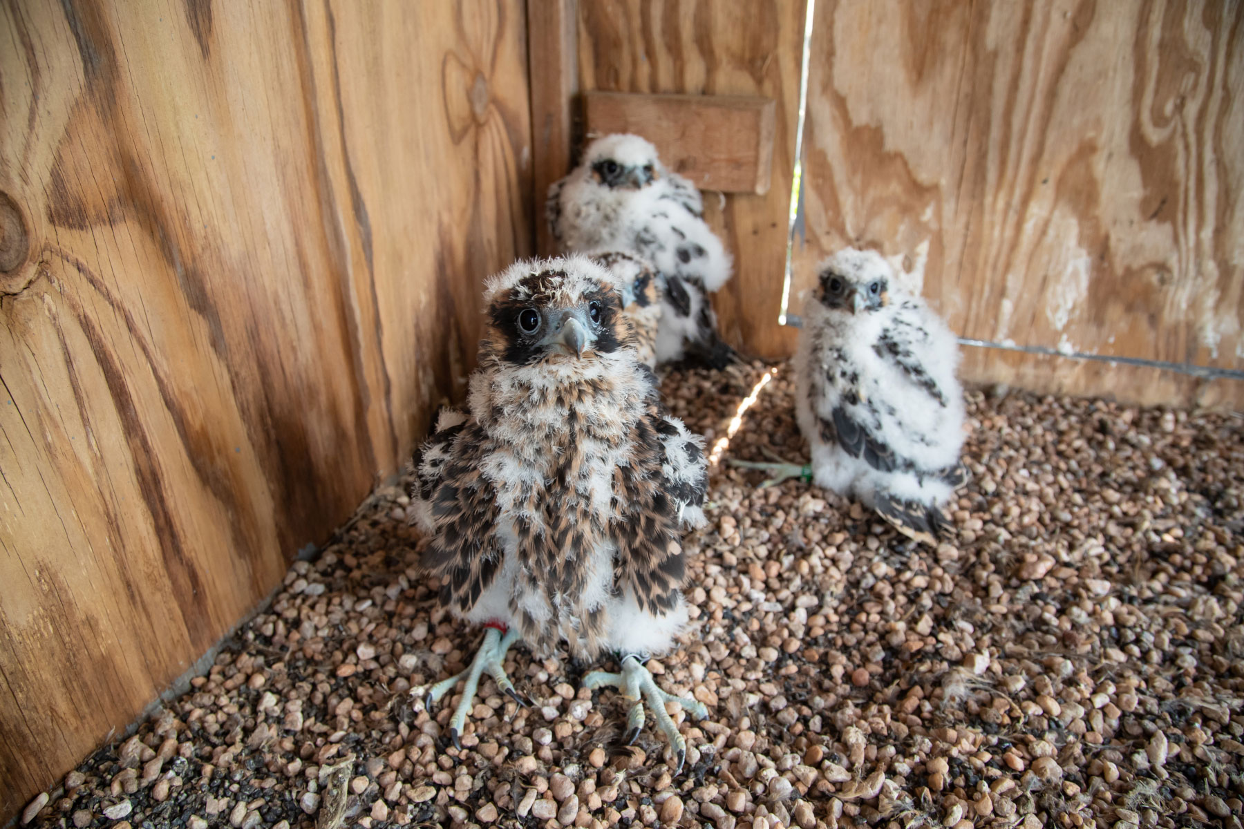 For two weeks, the box stayed shut, protecting the birds while they were still too young to fly and teaching them to think of it as their homebase. Within a couple days of representatives from The Peregrine Fund opening the box, the young falcons had taken their first flight, instinctually learning how to hunt on the wing.