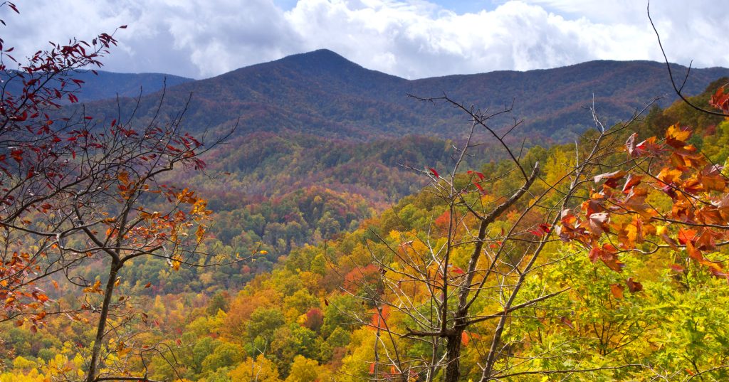 BRILLIANT FOLIAGE—Blueberry, Red Maple, Red Oak, Sourwood, Sugar Maple.  LESS BRILLIANT FOLIAGE—Beech (yellow), Frazier Magnolia (yellow/gold), Hickory (yellow/bronze), Indian Cucumber Root (yellow), Mountain Maple (pale yellow), Tulip Poplar (yellow).  NOTES—Foliage is close to peak if not at peak in sections of the park. A major weather front could result in much of the foliage being blown down to the ground so if one wants to see the foliage near or at its best, they should get out to see it as soon as possible. Foliage is more enjoyable on a clear day in full sun when the sky is brilliant blue. The foliage on Little River Road between Metcalf Bottoms and the Wye and on Laurel Creek Road from the Wye to Cades Cove is very colorful at the present time.  It is a real treat to see the colorful foliage reflected on the water in Little River. Surrounding ridges/hillsides look like a patchwork quilt with the various colors on display.